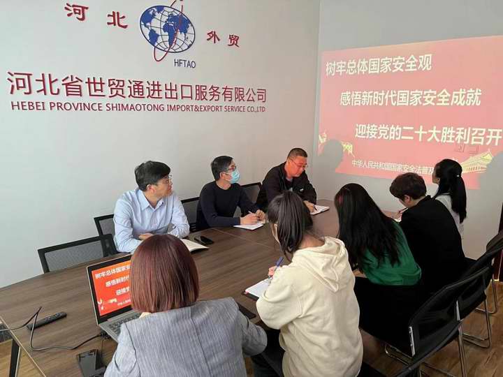 河北世貿(mào)通將結(jié)合實際,持續(xù)推進(jìn)國家安全教育,為黨的二十大勝利召開營造良好氛圍。(世貿(mào)通供稿)