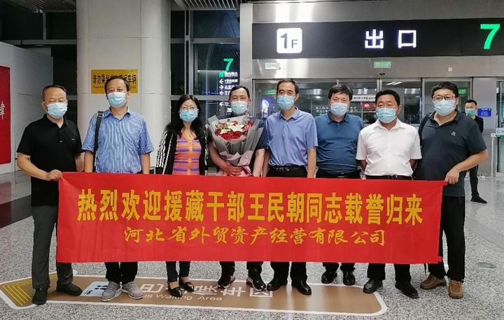 2022年7月12日凌晨,省外貿(mào)資產(chǎn)公司援藏干部王民朝同志完成使命,結(jié)束為期三年的援藏生涯,從西藏回到石家莊。受黨委書記、董事長張元貞同志委托,黨委副書記齊山水,工會主席張艷芳,綜合辦公室、黨委組織部、河北藍(lán)翼公司主要負(fù)責(zé)人代表公司黨委到機(jī)場迎接,對王民朝同志圓滿完成援藏任務(wù),載譽而歸表示熱烈歡迎。